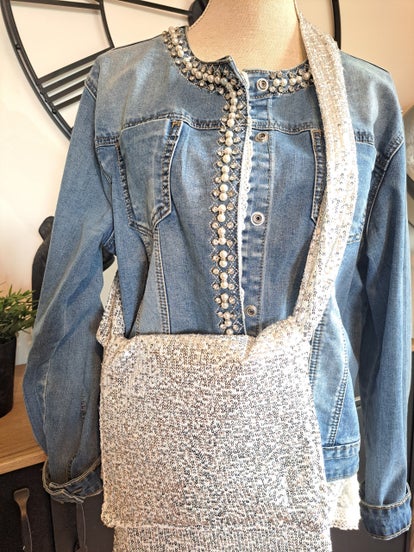 Sac bandoulière 3 carrés en sequins argent